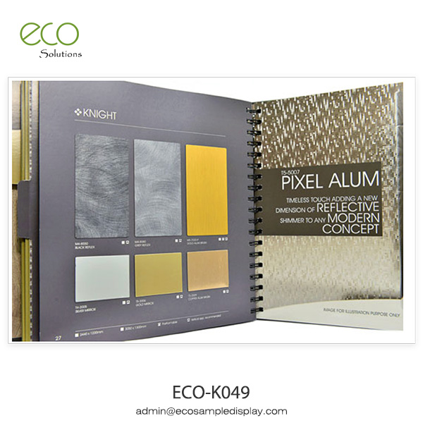 This laminates Sample Book with rings able to hold up to 100 pages of shade card. Showcase all the laminates finishes to your customers and interior designer.