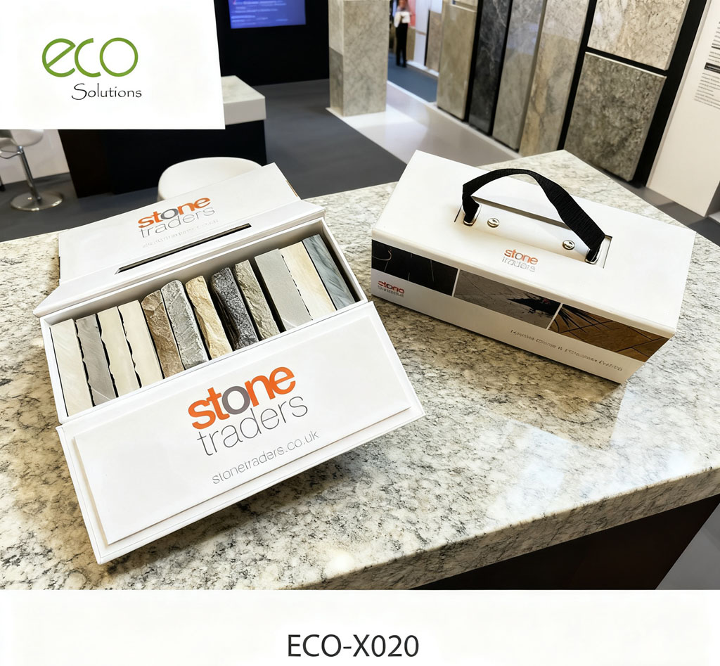 We help you design a strong and secure stone sample box that can be delivered directly to customers, carried on sales calls, or displayed in a showroom setting.