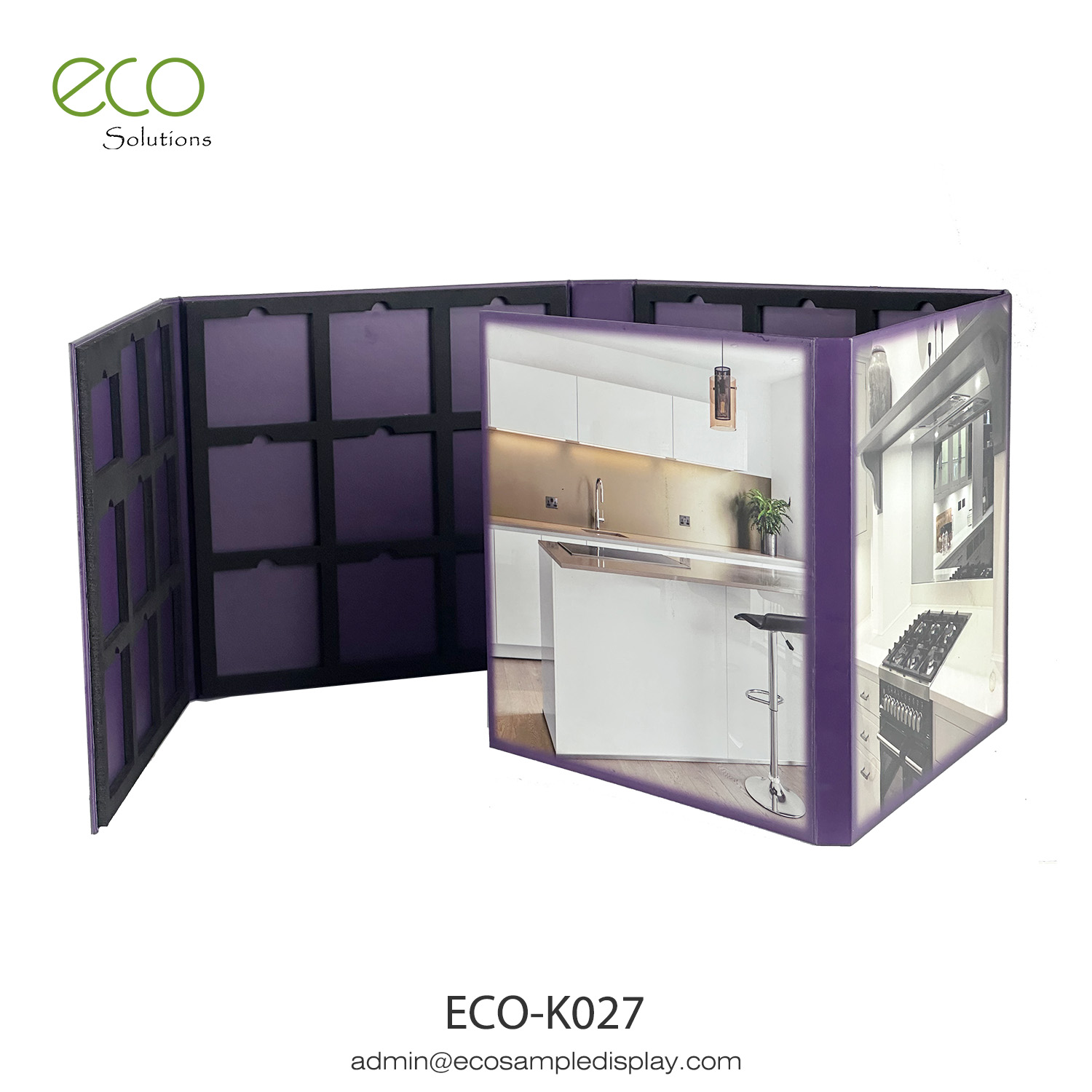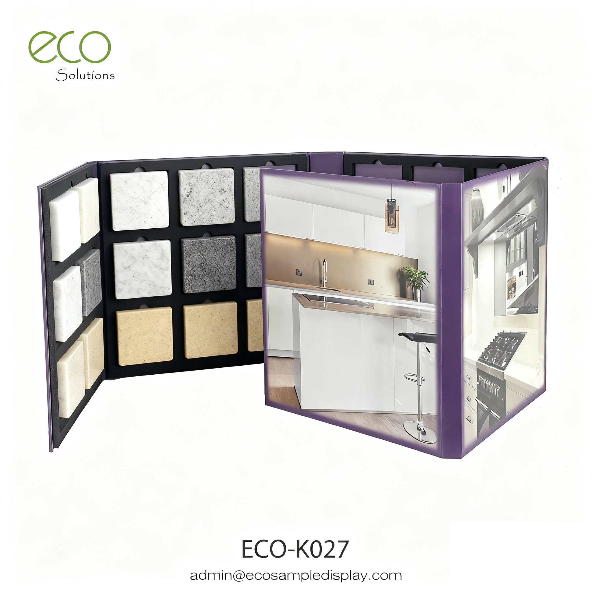 Eco sample display design and produce cost-effective sample books, sample folders for granite marble quartz stone, solid surface countertop flooring samples.